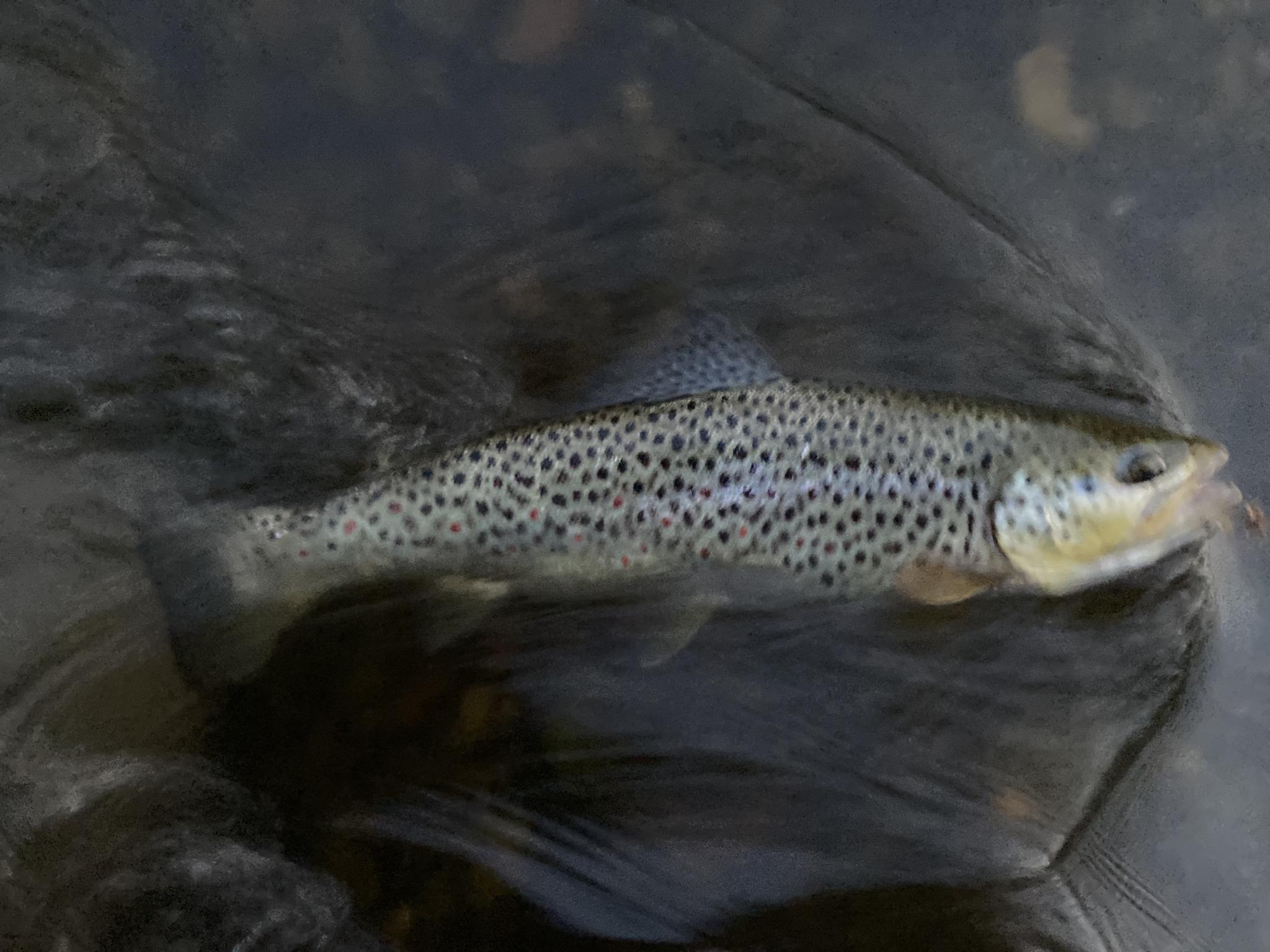 rose twice at the start of the first hen. spinner fall of the year. later risers were too tough with so many flies on the water.