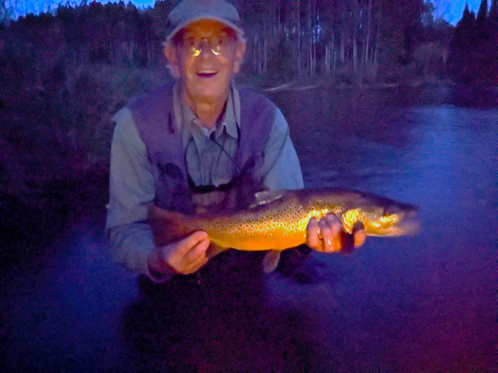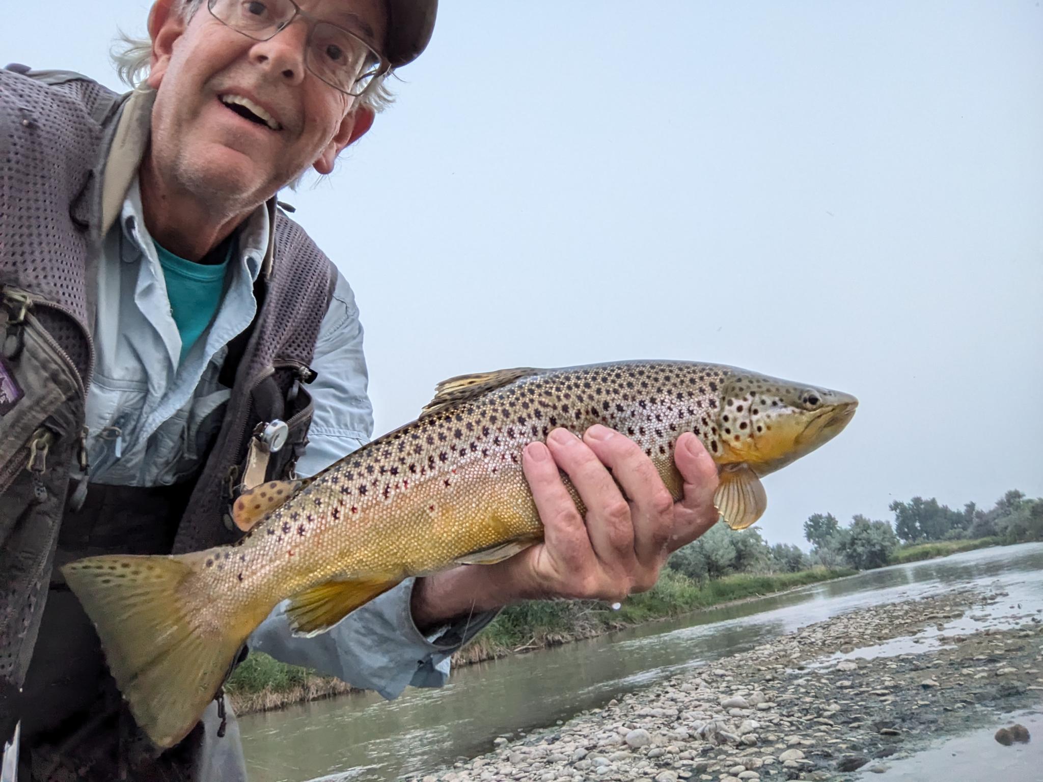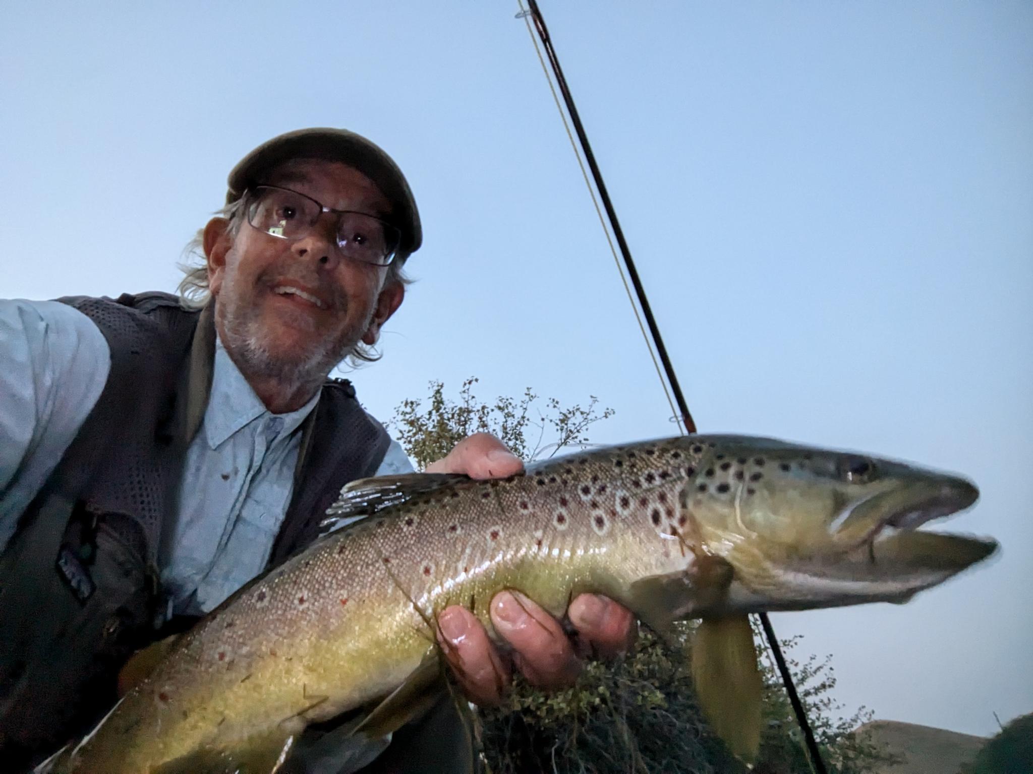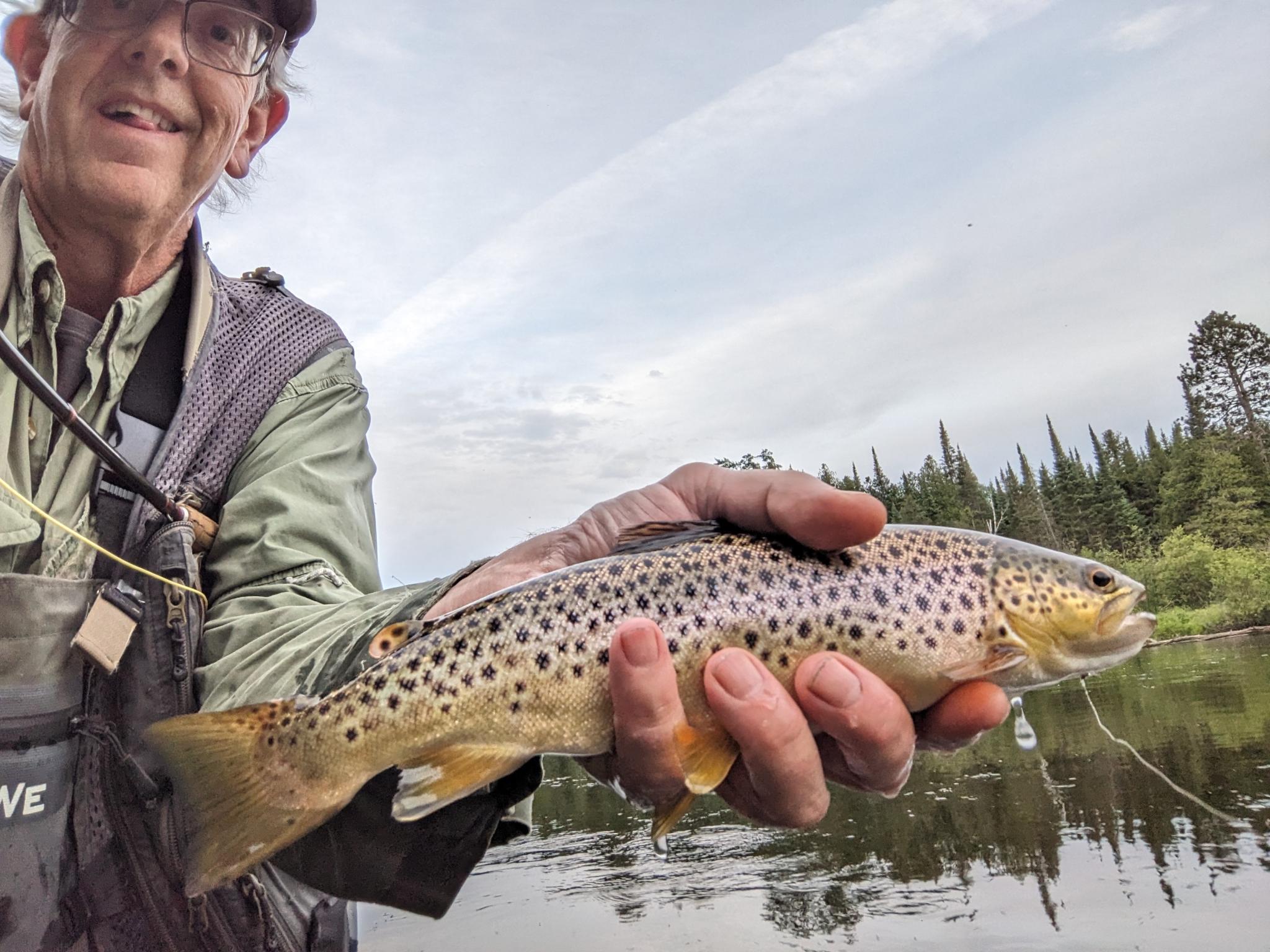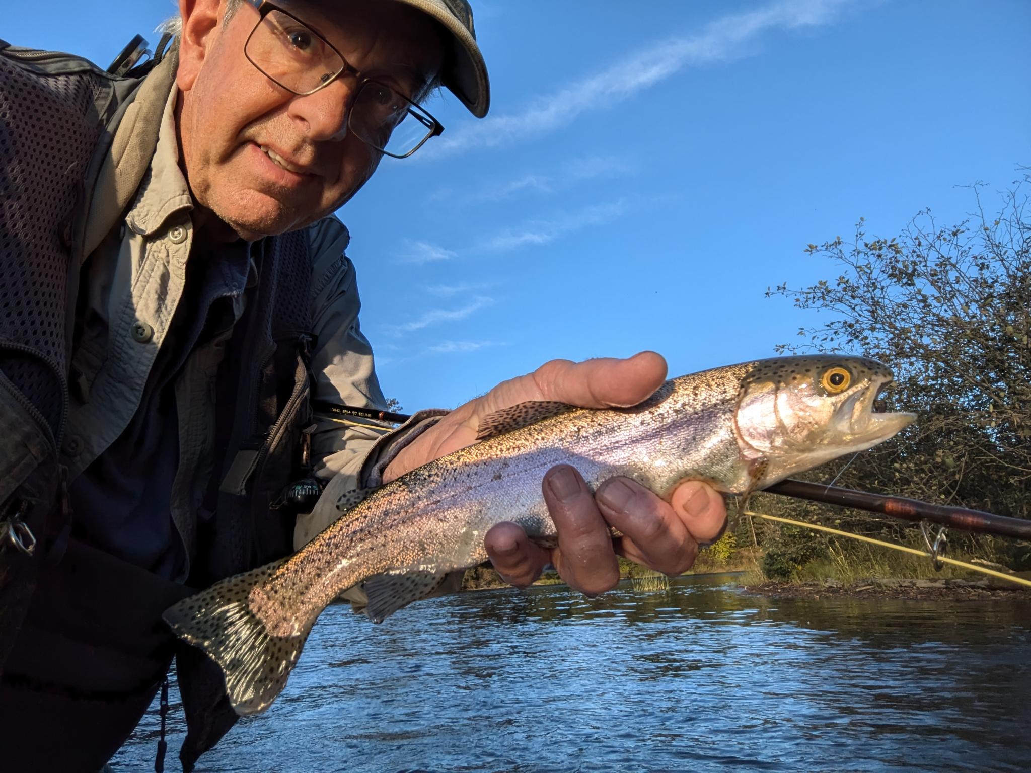 big brown bent my umpqua #14 hook in the riffle above bend out from the birch clump trees.