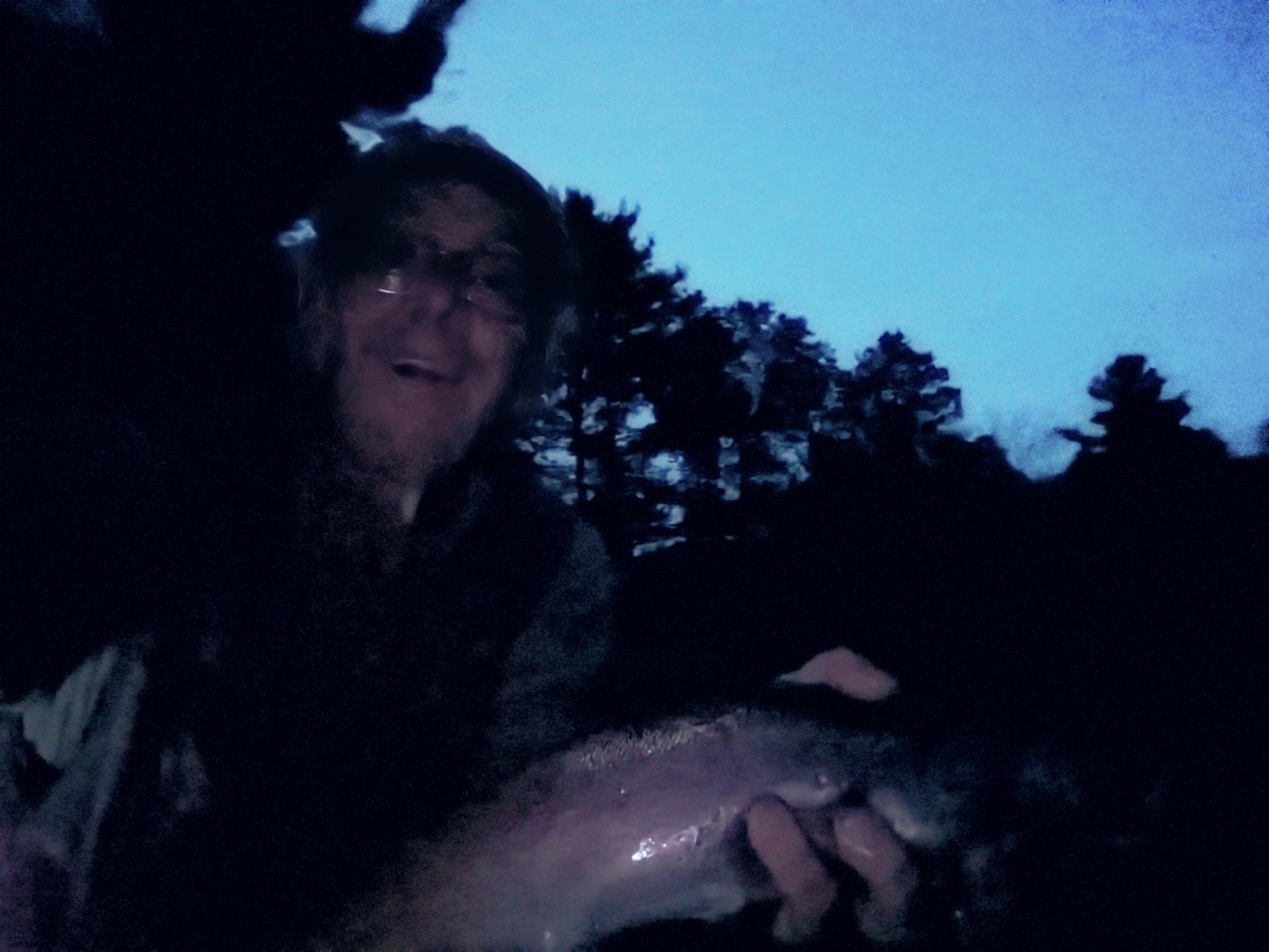 same one greg caught, on inside bend back pool, close to shore. strong fighter but I don't want to catch him again